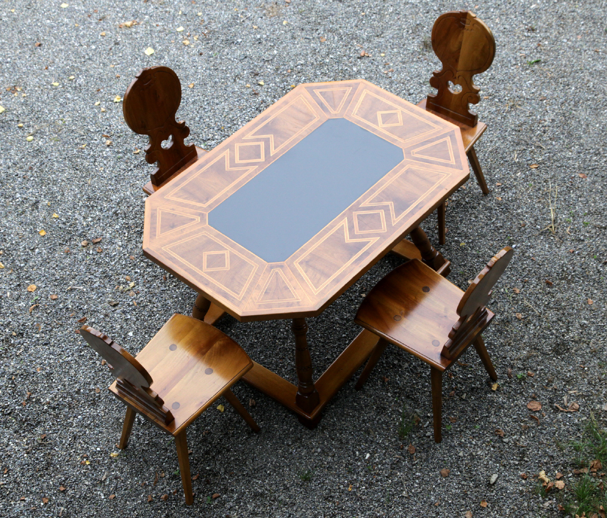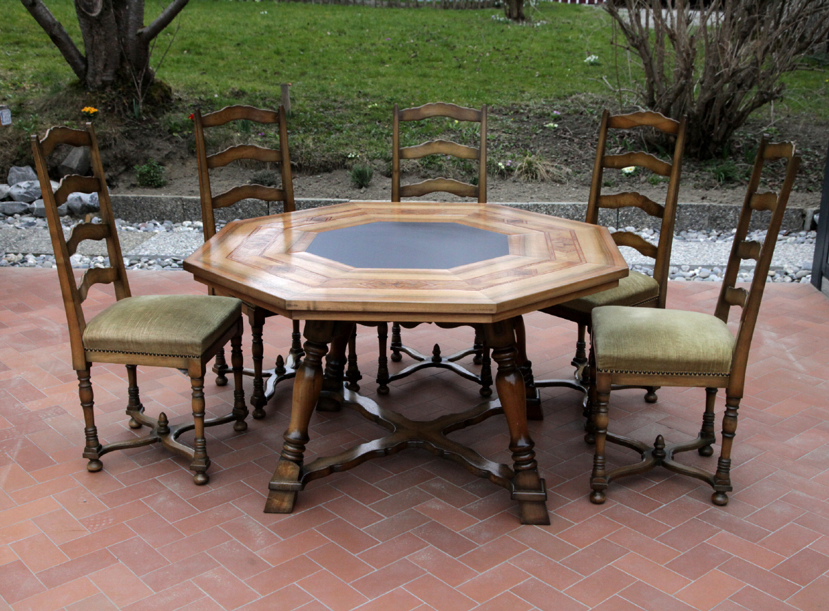 Schiefertisch 8-eckig mit Intarsien