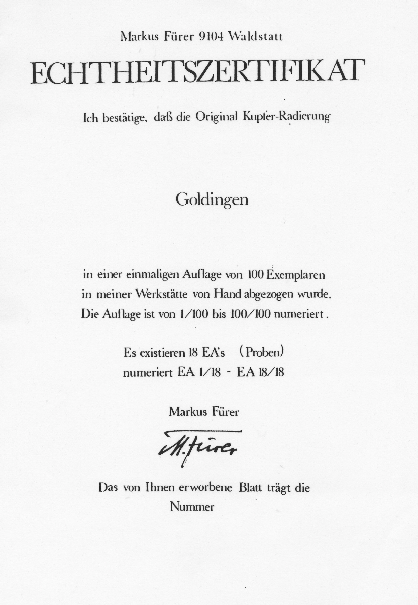 Goldingen Markus Fürer EA III/XVIII 3/100, 89/100, 94/100 - 99/100 mit Zertifikat à sFr. 35.00