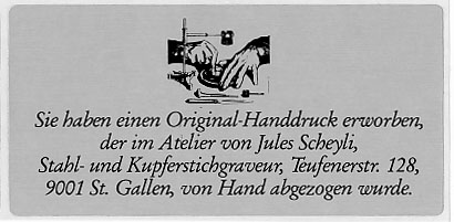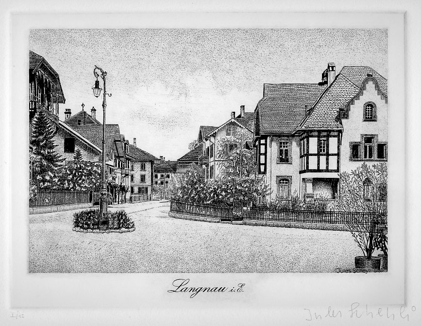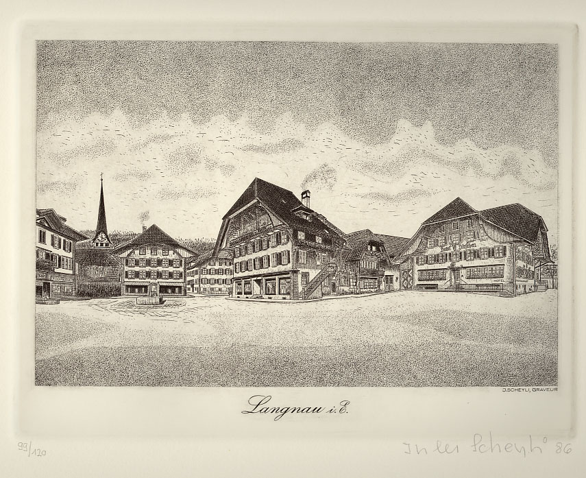 Langnau i.E. Jules Scheyli Druck ca. 20 c 15 cm I/12_III/12_IV/12_V/12_VI/12_VII/12_VIII/12 mit Prägestempel Original Handdruck, Stahlstich, Jules Scheyli 94/100 - 97/100, 98/100 - 99/100 à sFr. 45.00/35.00