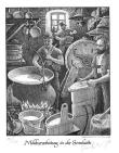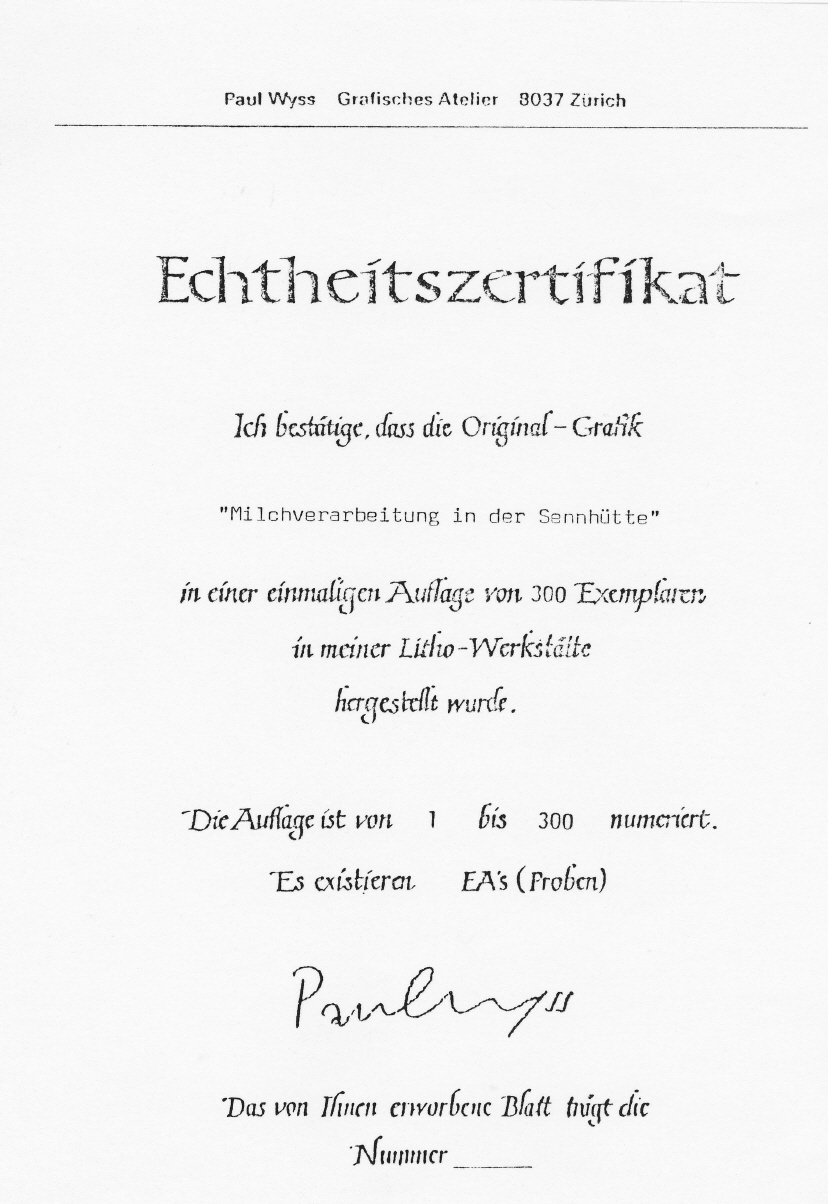 Milchverarbeitung in der Sennhütte Originalgrafik von Paul Wyss Druck ca. 13 x 11 cm 12/300 14/300 - 18/300 24/300 79/300 88/300 - 89/300 98/300 mit Zertifikat à sFr. 35.00