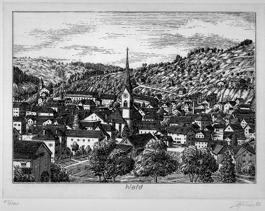 Wald ZH M. Fürer/86 Druck ca. 23 x 17 cm 73/100 - 74/100 77/100, 79/100, 81/100 83/100 - 84/100 87/100 - 100/100 à sFr. 35.00