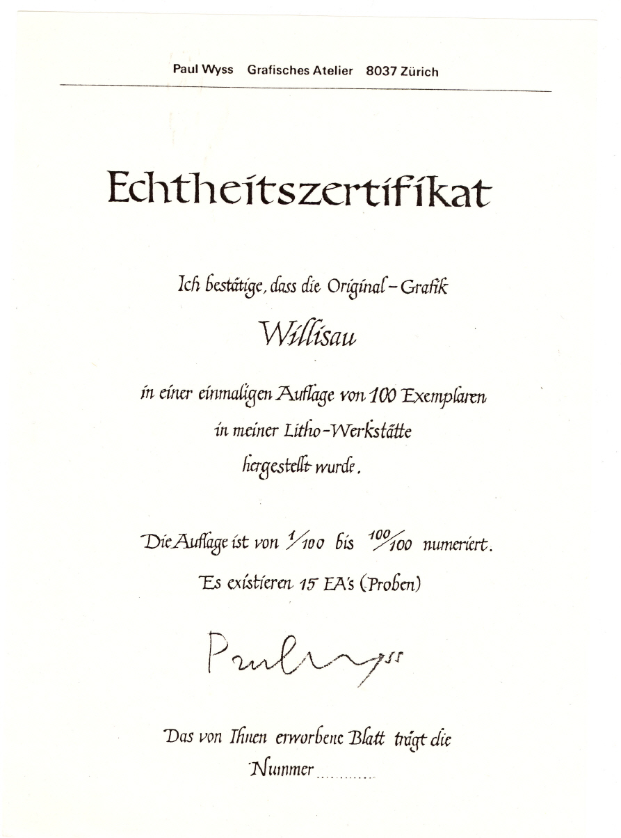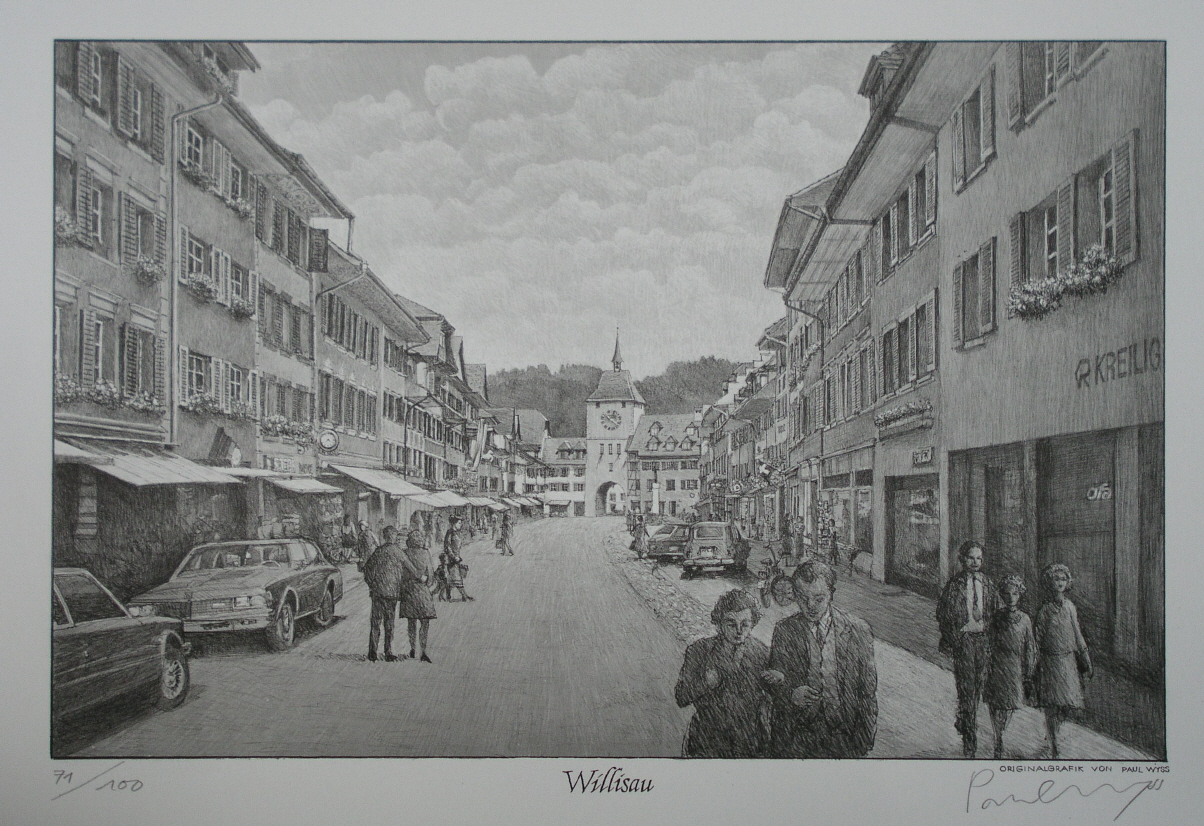 Willisau Originalgrafik von Paul Wyss Druck ca. 31 x 20 cm 11 Stück EA 1 Stück ohne Vermerk 71/100 - 83/100, 85/100 - 100/100 mit Zertifikat à sFr. 35.00