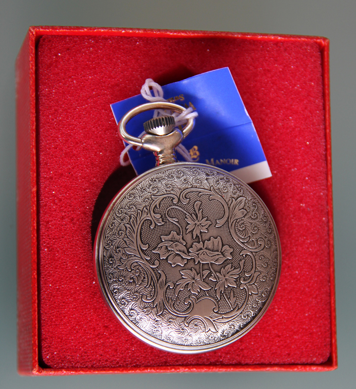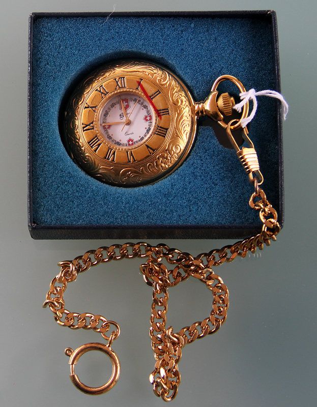 Taschenuhr Jacques du Manoir goldfarbig mit Kette ungebraucht aber Batterie muss ersetzt werden CHF 48--