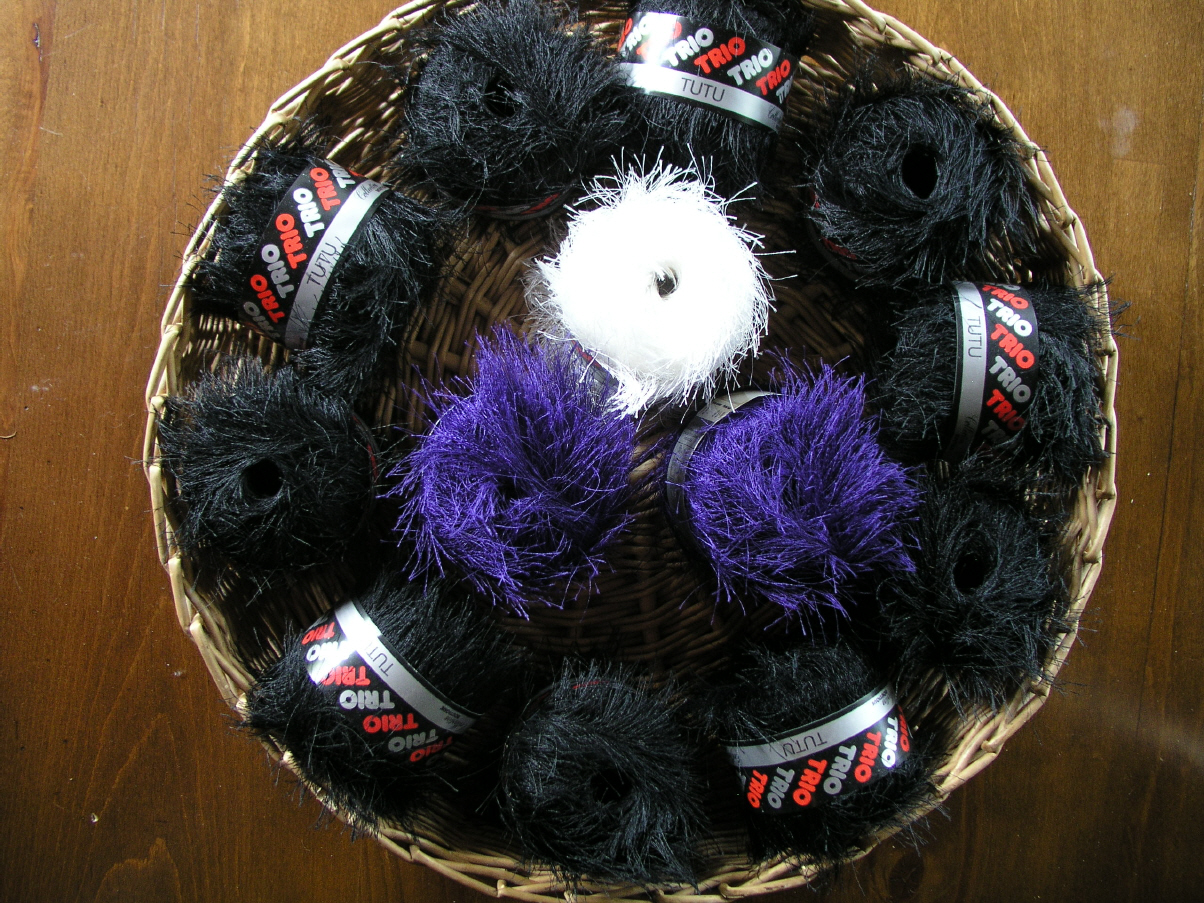 Trio Tutu 100% Polyester flammenhemmend ausgerüstet 50 g = 75 m, Nd. 5 ½, Gr. 40 = 450 g 10 Kn. Schwarz, 2 Kn. Violett, 1 Kn. Weiss